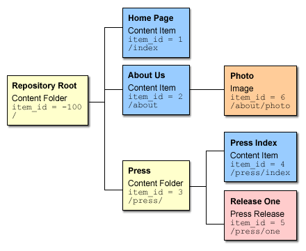 ACS Documentation : Content Repository : Developer GuideThe content repository organizes content items in a hierarchical structure similar to a filesystem. You manage content items in the repository using the same basic operations as in a filesystem:
